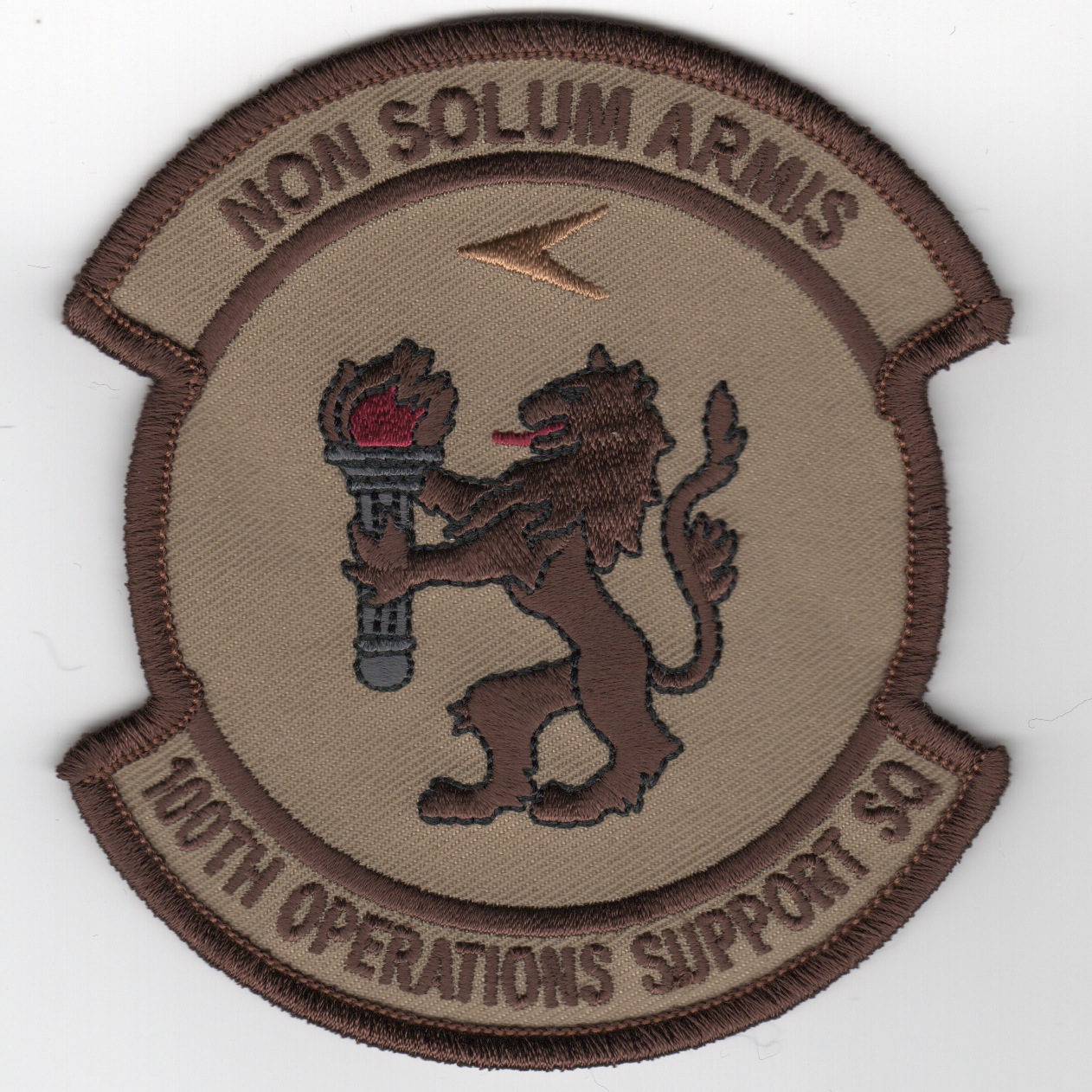 This is the desert version of the squadron patch for the 100 Operations Support Squadron (OSS) that are part of the 100 Air Refueling Wing (ARW) flying out of RAF Mildenhall. They are assigned to the Third Air Force, USAFE – Air Forces Africa, supporting operations in that theater. This patch does not come with velcro attached.