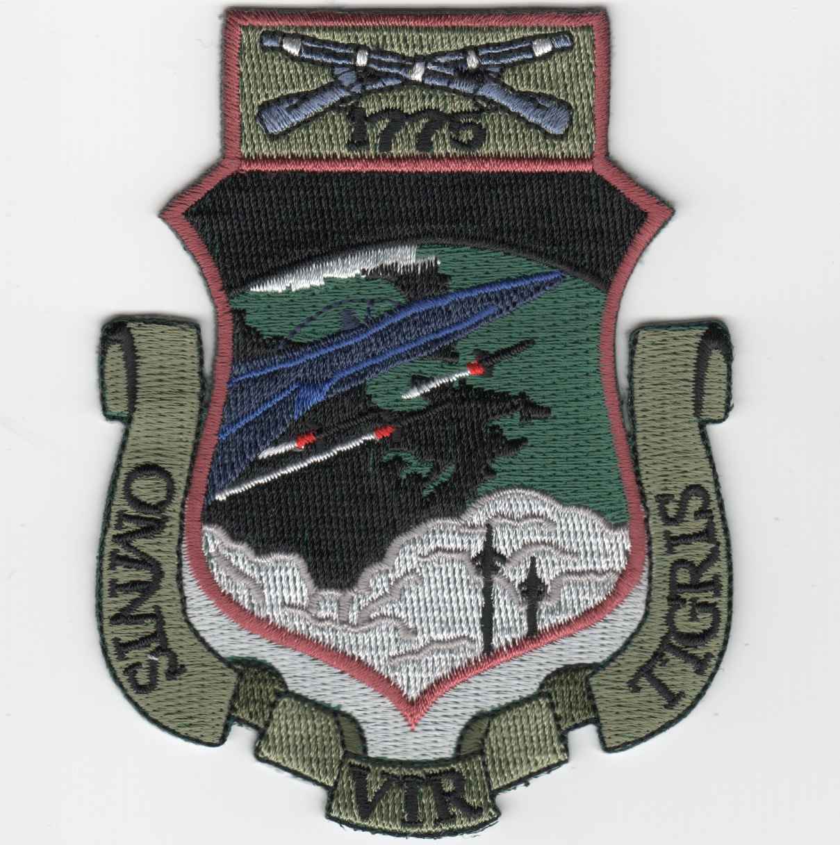 This is the “large” version of the current subdued version of the shield patch for the 102nd Fighter Wing, the controlling authority for the Massachusetts Air National Guard that states “OMNIS VIR TIGRIS” at the bottom. This patch does not come with velcro attached.