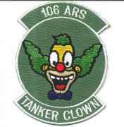 This is #1 of 6 “Tanker Clown” patches created for these squadrons. This one is in green and shows “Krusty, the Clown” on the front and denotes their squadron designation and mission at the top and bottom respectively. Get the entire set for $36.