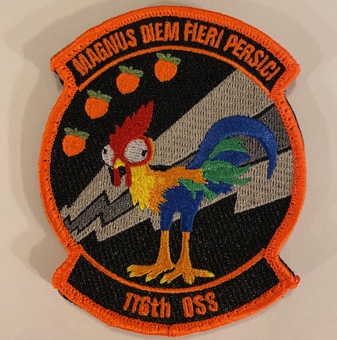 (Another AV8RSTUFF Creation): This is a neon-orange ‘FRIDAY’ patch worn by the 116th Operations Support Squadron (OSS) they are assigned to 116th Operations group of the 116th Air Control Wing stationed at Robins AFB, GA and are responsible for the Joint Surveillance Target Attack Radar System (JSTARS) sortie and all facets of scheduling deployments, training, and all that encompasses, to include long-range mission scheduling, building and executing exercises and deployments, aircraft software or modification training, and providing the necessary tactics and intelligence analyses to ensure wing mission success. This patch was created by the current (and last) OSS Commander for them to wear on Fridays (and Sundays of Drill Weekends) to boost morale. This patch shows “HEI HEI” (ROJAS), the unofficial mascot of the 116 OSS, standing upright and comes with velcro attached.