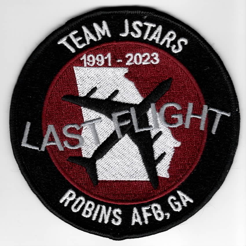 (Another AV8RSTUFF Creation): The 128 Bomb Squadron was a unit of the Georgia ANG / 116th Air Control Wing located at Robins AFB, GA. The 128th was equipped with the B-1B Lancer. The squadron’s first predecessor was the World War I 840th Aero Squadron, which was organized on 1 February 1918 and, after training in Texas, served in France as a depot unit. It returned to the United States in the March 1919 and was demobilized. The 128th Observation Squadron was allotted to the Georgia National Guard and was organized in May 1941. Four months later it was mobilized, and trained in aerial reconnaissance. In June 1942, the squadron began antisubmarine patrol missions over the Gulf of Mexico, being redesignated as the 21st Antisubmarine Squadron in the spring of 1943. After the Navy assumed control of the squadron’s mission, it began training as a heavy bomber unit as the 818th, then the 840th Bombardment Squadron. It deployed to the Mediterranean Theater of Operations in 1944, and engaged in strategic bombing until the end of World War II, earning two Distinguished Unit Citations before being inactivated in September 1945 at Pisa Airport, Italy. During the war, it was consolidated with the World War I aero squadron. In May 1946, the squadron was assigned to the National Guard as the 128th Fighter Squadron. It was mobilized again for the Korean War, but deployed to France to reinforce USAFE’s fighter force. When its activation was ended in July 1942, it was inactivated and transferred its personnel and planes to the 494th Fighter-Bomber Squadron, activating the same day in the Georgia Air National Guard as the 128th Fighter- Bomber Squadron. The squadron trained as a fighter unit until 1961, when it assumed the airlift mission as the 128th Air Transport Squadron. In 1973, the squadron returned to the fighter mission as the 128th Tactical Fighter Squadron. It became the 128th Bomb Squadron in 1996 operating out of Robins AFB, GA. In 2002, 116BW became the 116 Air Control Wing and began flying the E-8C Joint STARS aircraft. This patch commemorates the nose art that was on the last E-8C JSTARS flight in November 2023 and does not come with velcro attached. It was made in maroon to represent ALL FOUR of the operational squadrons.