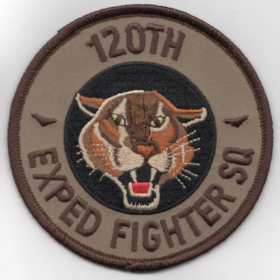 The 120th Fighter Squadron (120 FS) is a unit of the Colorado Air National Guard 140th Wing located at Buckley Air Force Base, Aurora, Colorado. The 120th is equipped with the F-16C/D Fighting Falcon. The squadron is a descendant organization of the World War I 120th Aero Squadron, established on 28 August 1917. It was reformed on 27 June 1923, as the 120th Observation Squadron, and is one of the 29 original National Guard Observation Squadrons of the United States Army National Guard formed before World War II. The 120FS was the first federally recognized Air National Guard unit, receiving this distinction on 30 June 1946. Thus, their motto is, “First in the Air Guard.” This is the desert version of their “EXPEDITIONARY” squadron patch and does not have velcro attached.