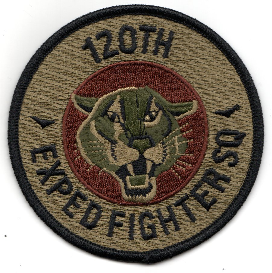The 120th Fighter Squadron (120 FS) is a unit of the Colorado Air National Guard 140th Wing located at Buckley Air Force Base, Aurora, Colorado. The 120th is equipped with the F-16C/D Fighting Falcon. The squadron is a descendant organization of the World War I 120th Aero Squadron, established on 28 August 1917. It was reformed on 27 June 1923, as the 120th Observation Squadron, and is one of the 29 original National Guard Observation Squadrons of the United States Army National Guard formed before World War II. The 120FS was the first federally recognized Air National Guard unit, receiving this distinction on 30 June 1946. Thus, their motto is, “First in the Air Guard.” This is the OCP version of their “EXPEDITIONARY” squadron patch and does not have velcro attached.