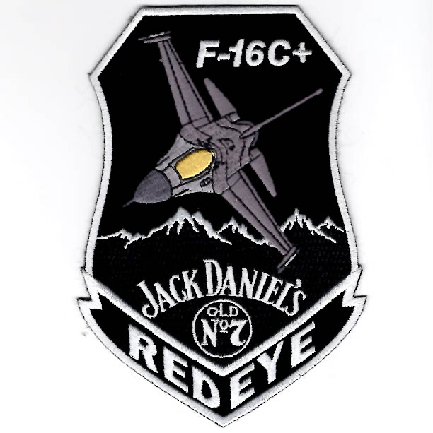 This is the black “JACK DANIELS”-style version of the “REDEYE” patch created by the 120FS, the Colorado Air National Guard unit that flies the F-16C+ out of Buckley AFB in Denver, CO. This patch does not come with velcro attached.