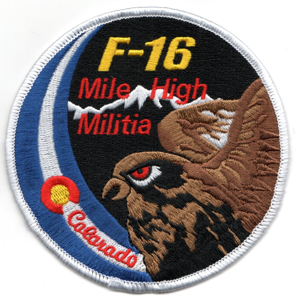 The 120th Fighter Squadron (120 FS) is a unit of the Colorado Air National Guard 140th Wing located at Buckley Air Force Base, Aurora, Colorado. The 120th is equipped with the F-16C/D Fighting Falcon. The squadron is a descendant organization of the World War I 120th Aero Squadron, established on 28 August 1917. It was reformed on 27 June 1923, as the 120th Observation Squadron, and is one of the 29 original National Guard Observation Squadrons of the United States Army National Guard formed before World War II. This patch says “MILE HIGH MILITIA” since they are located greater than 5,280 MSL……This patch does not have velcro attached.