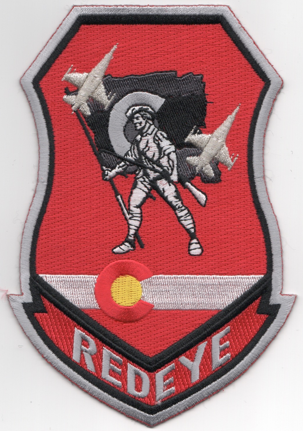 This is the large, red version of their “SHIELD” patch which says “REDEYE” along the bottom and has the minuteman with 2 F-16s (silver thread). This patch does not have velcro attached.