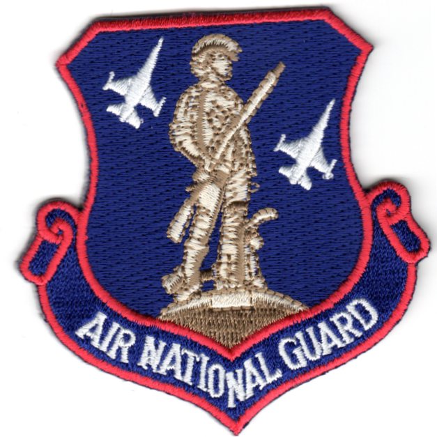 This is the dark blue version of the 121FS Air National Guard (ANG) crest patch depicting their current aircarft, the F-16 behind the “Minuteman”….this patch does not have velcro attached.