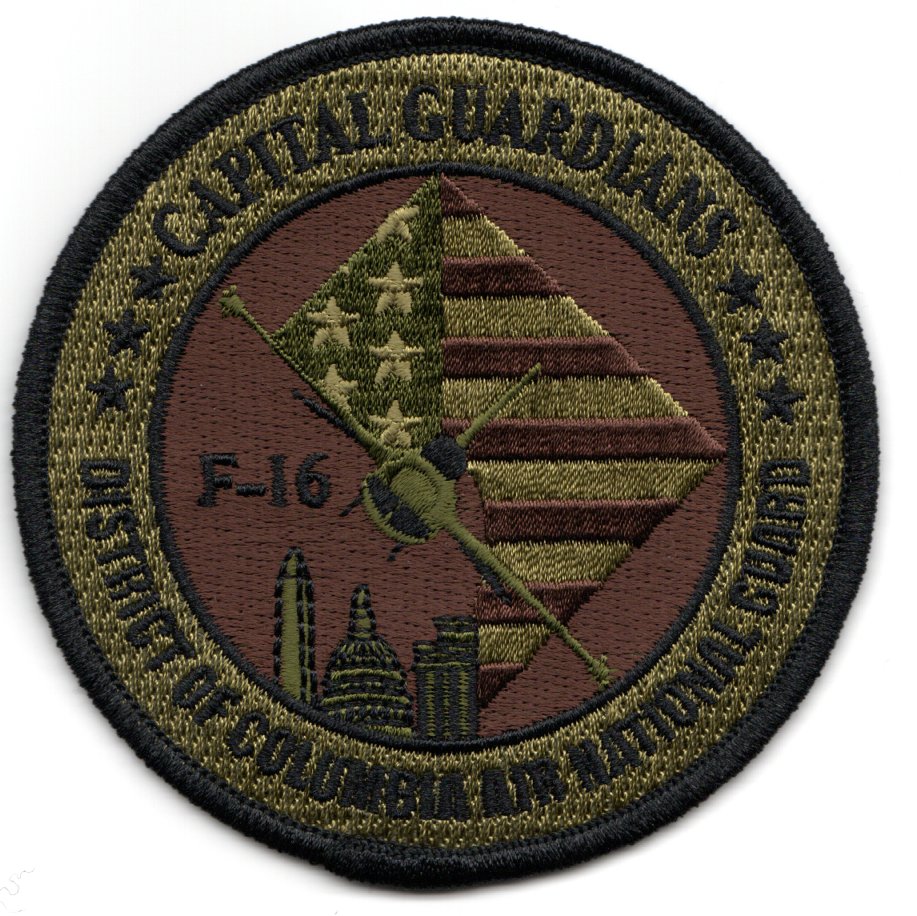 This is the 121FS ‘Capital Guardians’ patch that says “”””District of Columbia Air National Guard”””” and shows an F-16 over the White House. It has the subdued/OCP coloring and no velcro.