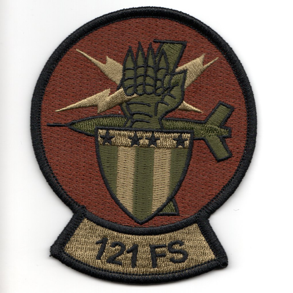 This is the OCP version of the 121FS squadron patch that shows a “”””Knights Glove”””” holding lightning bolts above a shield. This patch does not have velcro attached.
