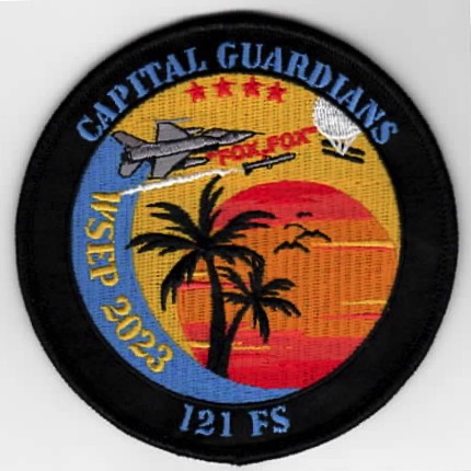 This is the 121FS ‘Capital Guardians’ DET patch created for their participation in the 2023 Weapons Evaluation System Program (WESP) held at Tyndall AFB, FL. WSEP is the US Air ForceÕs joint program to test air-to-air and air-to-ground live-fire weapons. It offers aircrew members the opportunity to fire live missiles while providing the ground crew with experience handling live munitions. This patch does not have velcro attached.