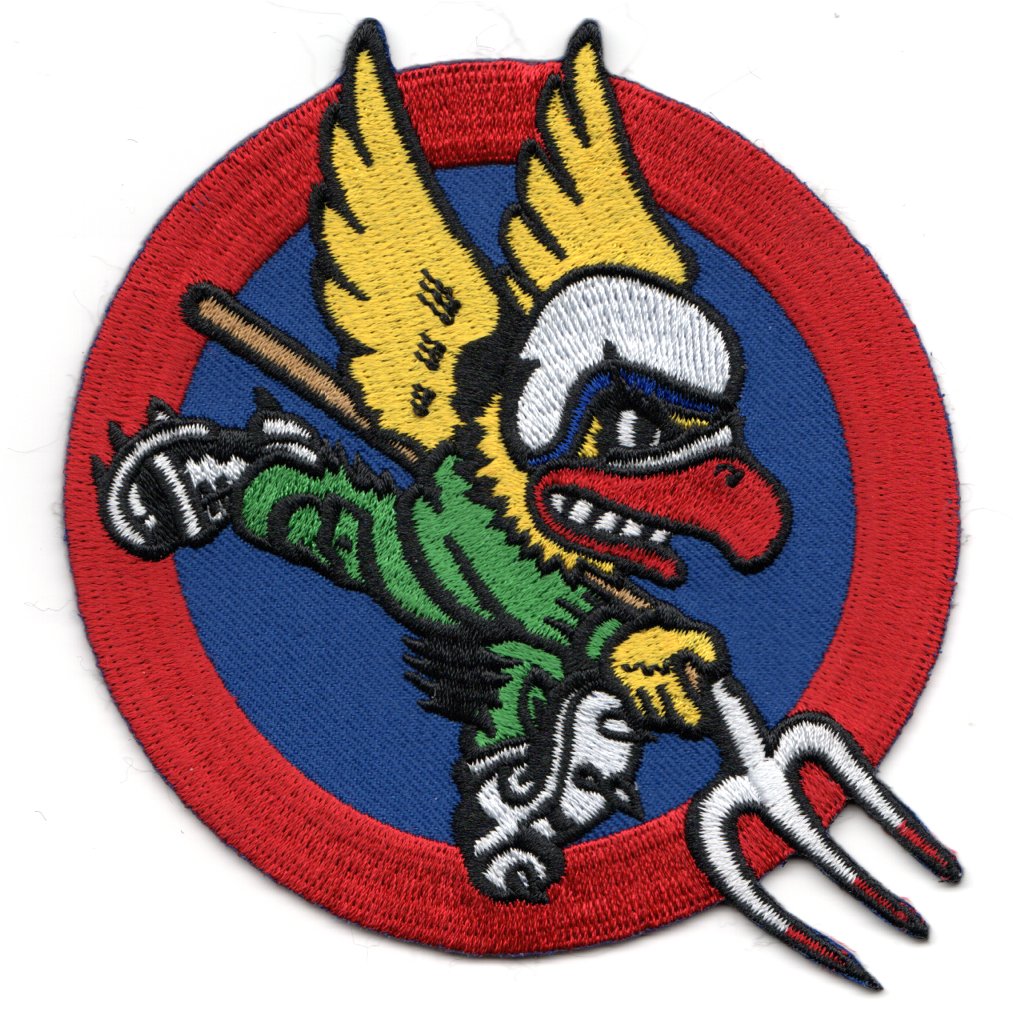 This is the “HERITAGE” patch created by the 124th Fighter Squadron. It shows their mascot with the pitchfork, but has NO TEXT on the patch. In the early days, that was how it was done. This patch does not come with velcro either.