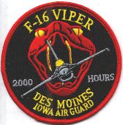 This is the color version of the 2000 Hours aircraft patch for the 124th Fighter Squadron that flies the F-16 for the IA Air National Guard out of Des Moines, IA.