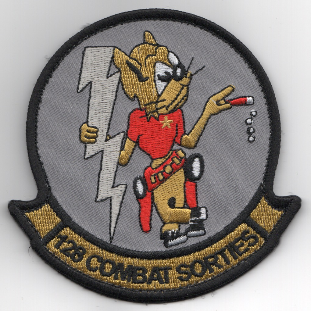 (Another AV8RSTUFF Creation): This patch was created for one of the flyers that coincidentally had the same number of COMBAT FLIGHTS as he did the SQUADRON DESIGNATOR. All else is the standard ACCS Squadron patch, with the text at the bottom changed. I only have a few of these left and this patch does have velcro attached.