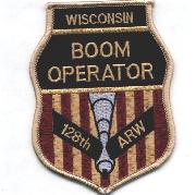 This is the desert version of the “Boom Operator” crest patch for the 128th Air Refueling Wing, the Wisconsin Air National Guard.