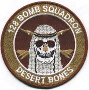This is the OFFICIAL Desert-colored patch worn by the 128th Bomb Squadron personnel while deployed to “”””other”””” regions. They incorporate the infamous skull and crossed (B-1s).