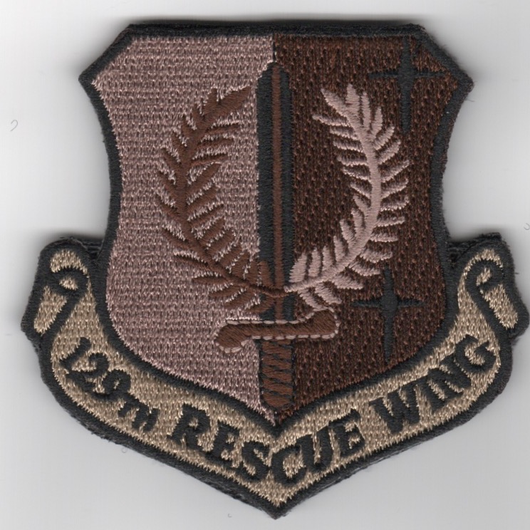 This is the desert version of the wing crest patch for the 129th Rescue Wing. The 129th Rescue Wing (129 RQW) is a unit of the California Air National Guard, stationed at Moffett Federal Airfield, Mountain View, California. If activated to federal service, the Wing is gained by the United States Air Force Air Combat Command. This patch comes with velcro attached./B>