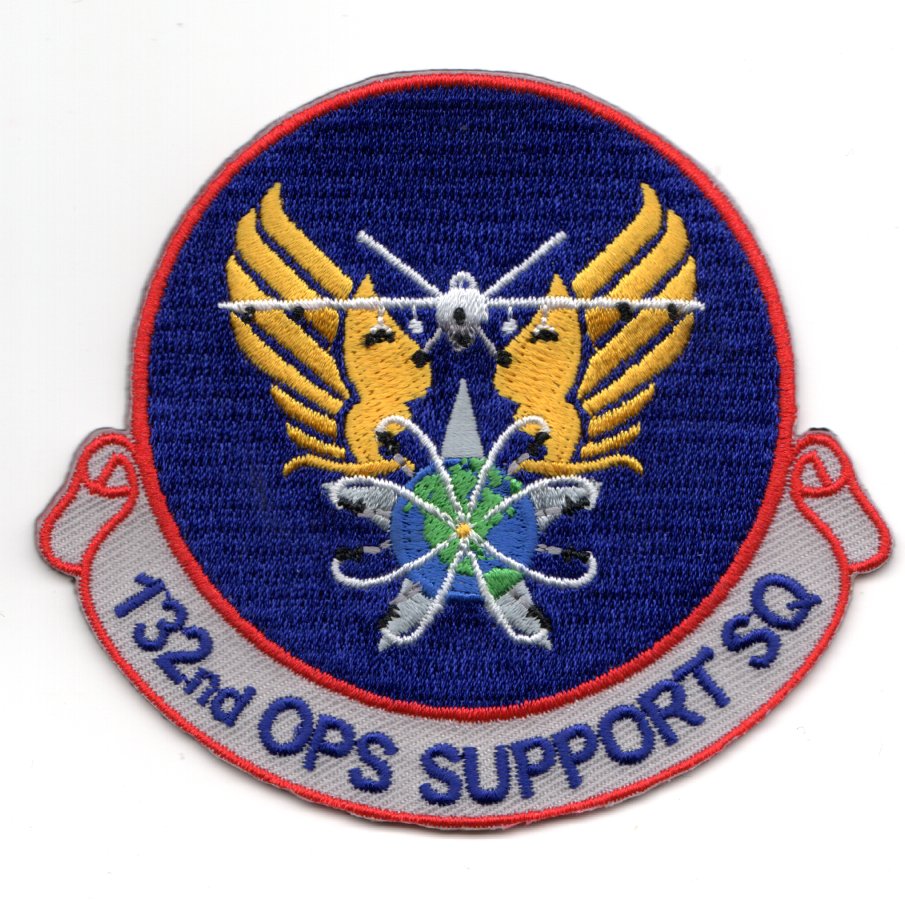 This is the squadron patch for the 132nd Operational Support Squadron (OSS). The 132nd Wing is a USAF unit assigned to the Iowa ANG and located at Des Moines ANG Base, IA. After having operated manned fighter aircraft for all of its prior history, the wing was equipped with the MQ-9 Reaper unmanned aerial vehicle in 2013. This patch does not come with velcro attached.