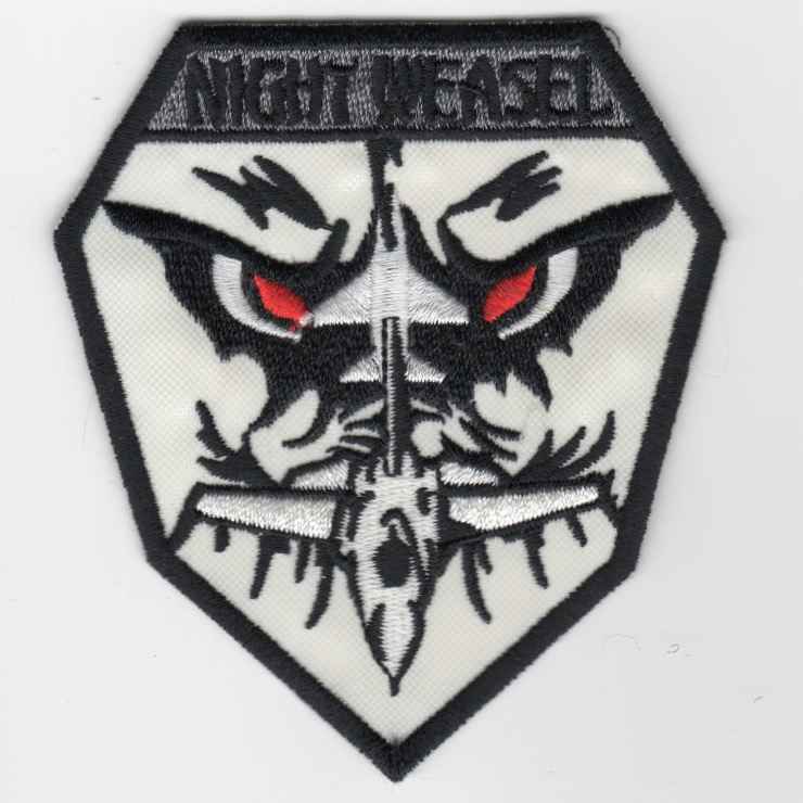 (Korean): The 14FS is part of the 35FW at Misawa Air Base, Japan. They operate the F-16 Fighting Falcon aircraft conducting Wild Weasel missions. The squadron has been stationed at Misawa since 1987. The squadron was deactivated, but then reactivated in 1987 as the 14TFS at Misawa Air Base, initially training for close air support using conventional weapons. They also provided for the air defense of northern Japan. This patch is the white ‘diamond’ version of the “NIGHT WEASEL” patch and was found in a Korean embroidery shop in very limited quantities. This patch does not come with velcro attached.