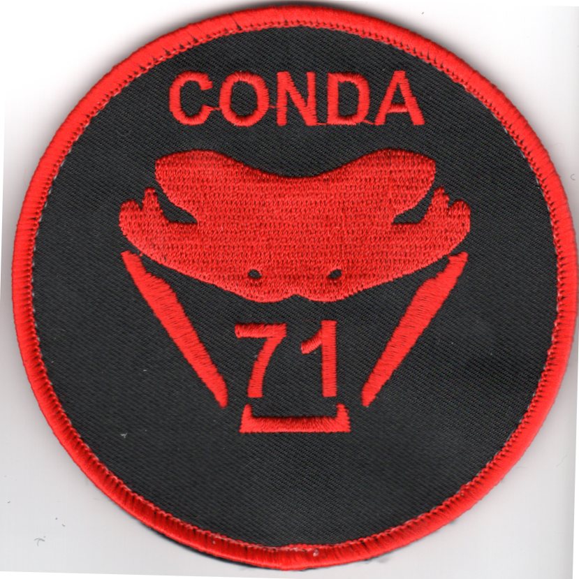The 14th Flying Training Wing is a wing of the United States Air Force based out of Columbus Air Force Base, Mississippi. The 14th Operations Group and its six squadrons are responsible for the 52-week Specialized Undergraduate Pilot Training (SUPT) mission. This is the ‘CONDA 71’ Class patch created for the 14th Flying Training Wing for when the pilots SOLO, I believe. This patch has velcro attached.
