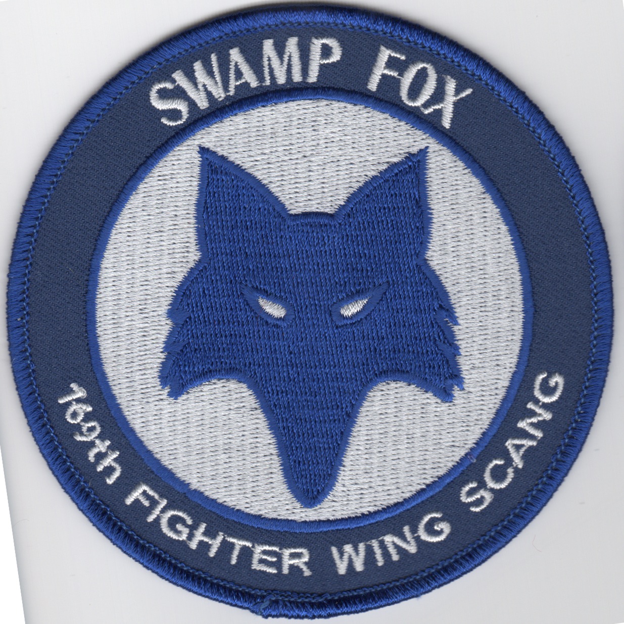 This is the color version of the current squadron patch for the 169th Fighter Wing, the Viper squadron for the SC Air National Guard. It has the blue foxhead on a white background, and does not come with velcro attached.