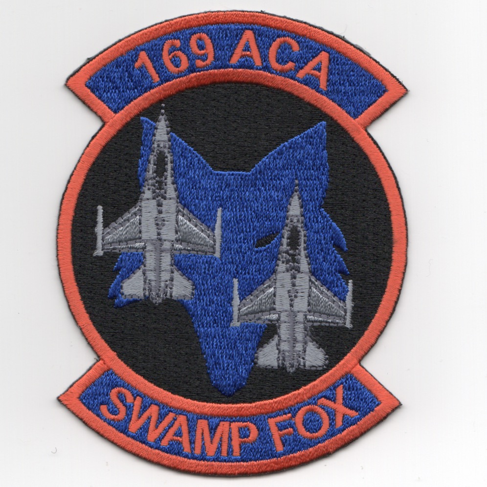 ACA Fighter crews are inspected by the 1st Air Force inspection team from Tyndall AFB, FL with the purpose to assess the procedures and execution of the North American Aerospace Defense mission for ACA-trained units, ensuring they remain qualified to carry out the Homeland Defense mission. This is the Orange/Blue version of the 169 ‘ACA’ Swamp Fox squadron patch which shows two F-16 Vipers on the patch and does not have velcro attached.