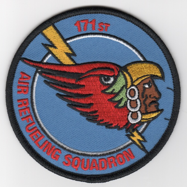 The 171st Air Refueling Squadron (117 ARS) is a unit of the Michigan Air National Guard’s 127th Wing (127 WG) located at Selfridge Air National Guard Base, Michigan and is equipped with the KC-135T Stratotanker. This is the MEDIUM-blue version of their squadron patch and does NOT come with velcro attached.