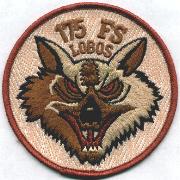 This is the desert version of the aircraft patch for the 175th Fighter Squadron “Lobos” that flies the F-16 for the SD Air National Guard. It depicts the mascot’s head staring at you, ready to pounce….this patch does not have velcro attached.