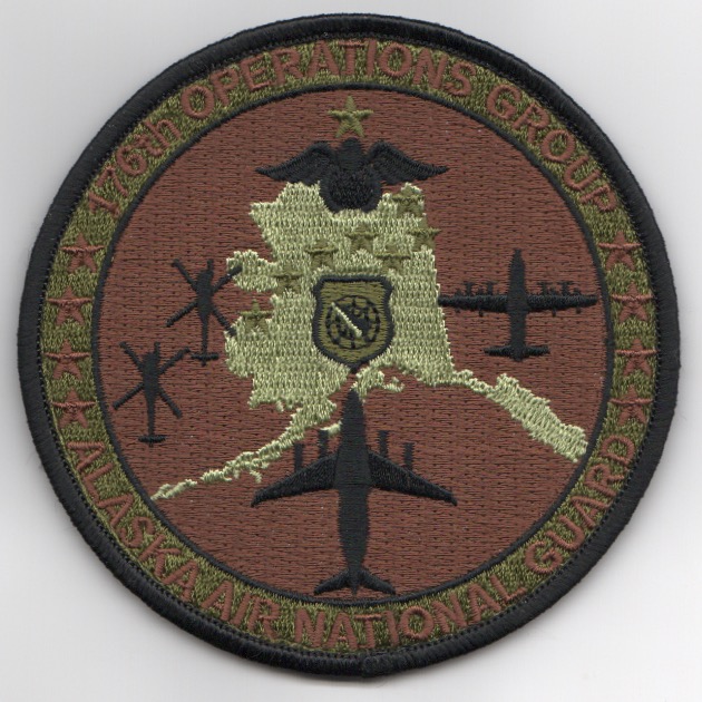 The mission of the 176OG is to ensure the combat readiness of 176OG assets, including 30 aircraft and more than 600 assigned personnel committed to meeting National Guard Bureau and Pacific Air Forces (PACAF) taskings. They also provide training, intelligence, weapons/tactics, resource management and airfield operations support to all components of the 176OG and intelligence support to all components of the 176th Wing. This is the new OCP version of their patch and DOES come with velcro attached.