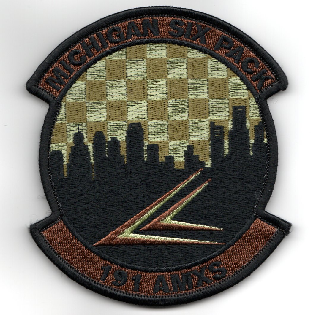 (Another AV8RSTUFF Creation): As a key component of the 127th Fighter Wing, the 191 Aircraft Maintenance Squadron is critical to the operations of the squadron aircraft. The 127th Wing is home to two flying missions of the MI ANG, serving both Air Combat (ACC) and Air Mobility Commands (AMC). In addition, the 127th Wing serves as host unit at Selfridge ANG Base, a military air field established in 1917. Currently, Selfridge ANGB is home to more than 40 tenant units from all branches of the Department of Defense and Department of Homeland Security. This is the OCP version of their current squadron patch, says “MICHIGAN SIX PACK” (top) and does come with velcro attached.