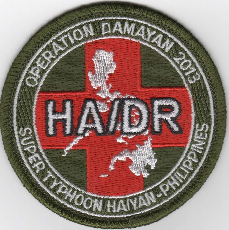 (From their Japanese Supplier): Super Typhoon Haiyan/Yolanda in 2013 impacted millions of people across the Philippines. U.S. Pacific Fleet supported the broader U.S. Government effort to rapidly deliver humanitarian assistance and disaster relief to the areas the Philippine government deems most in need. This is the round bullet version of the operational patch created to commemorate this effort and does not come with velcro already attached.