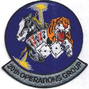 This is the blue version of the ops group patch for the squadrons stationed at Shaw AFB, SC. It shows a “mushroom cloud” in the background, and has all the “mascots” combined.
