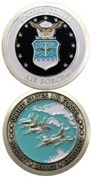 (From the official NEX / BX Supplier #2241): FRONT: Says ‘UNITED STATES’ (top), ‘AIR FORCE’ (bottom), and the USAF logo in the middle. BACK: Says ‘UNITED STATES AIR FORCE’ (top), the USAF ‘motto’ along the bottom, and a division of F-16s flying.