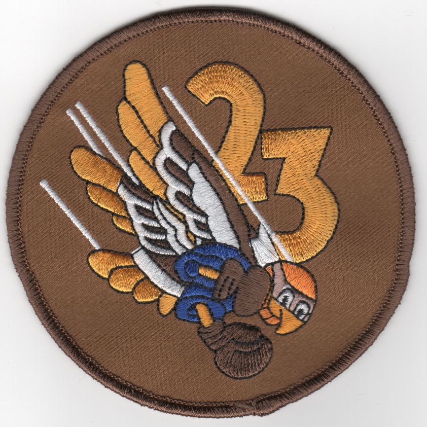 (Another AV8RSTUFF Creation): The 23FS is an inactive USAF unit. It was last assigned to the 52d Operations Group and stationed at Spangdahlem Air Base, Germany. In April 2010, 20 F-16Cs were flown from Spangdahlem to the 148FW, MN ANG, with one F-16 being transferred to Edwards Air Force Base, CA. They were inactivated on 13 August 2010A and as a result of the drawdown of F-16s, the 22nd and 23d Fighter Squadrons and their personnel and equipment were used to form a single “new” squadron, the 480th Fighter Squadron. This is the desert version of their squadron patch and does not come with velcro attached.