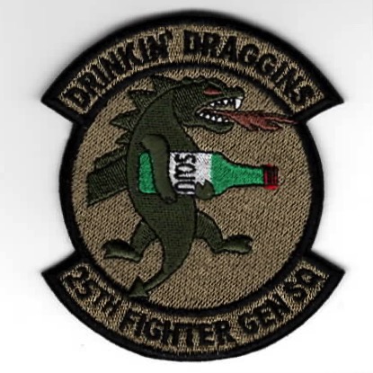 (From the Squadron supplier:) The 25FS is part of the USAF’s 51OG, 51FW, at Osan Air Base, South Korea. They operate the Fairchild Republic A-10 Thunderbolt II aircraft conducting close air support (CAS) missions. On 28 January 1982, the 25FS received its first Fairchild Republic A-10 Thunderbolt II aircraft. The squadron’s presence helped maintain a peaceful armistice between North and South Korea until 2 October 1989. It was during that time that the 25th began transferring aircraft to the 19th Tactical Air Support Squadron and other stateside units. The 25th was then inactivated on 1 July 1990. On 1 October 1993, the 25FS was reactivated under the 51st Wing at Osan Air Base, Republic of Korea, and has since added six A-10 aircraft to its fleet, making it a dual qualified A/OA-10 squadron. This is the OCP version of their “FIGHTER GEN SQDN” patch that says “DRINKIN DRAGGINS” (top) and was found in a Korean embroidery shop in very limited quantities. This patch does not come with velcro attached.