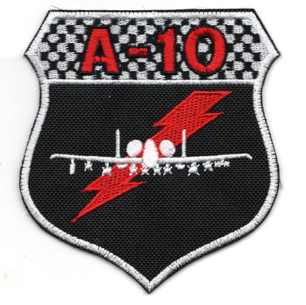 (From the Squadron supplier:) For the 25FS history, see the details listed above. This is the ‘black-white checkered’ version of the A-10 ‘crest’ that shows the aircraft coming directly at you with a red lightning bolt in the background. This patch was found in a Korean embroidery shop in very limited quantities and does not come with velcro attached.
