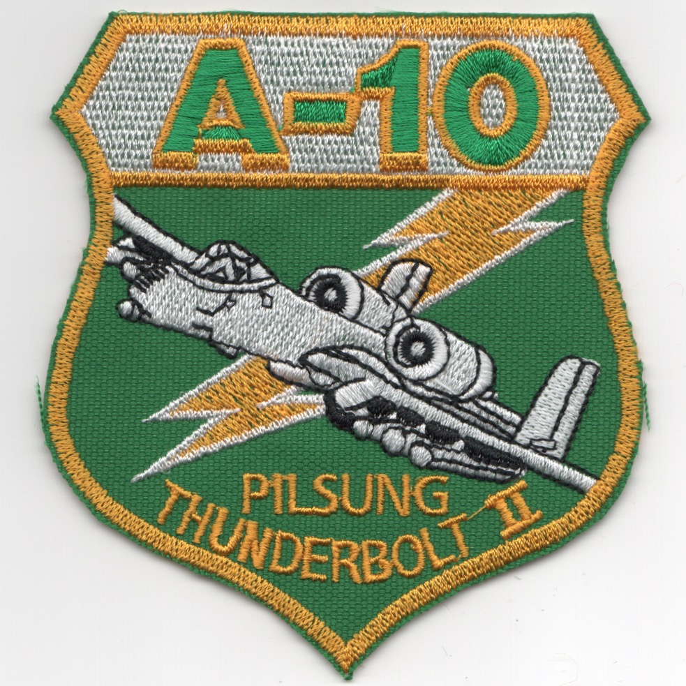 (From the Squadron supplier:) For the 25FS history, see the details listed above. This is the green-yellow version of the A-10 ‘THUNDERBOLT II’ crest that says ‘PILSUNG’ at the bottom. This patch was found in a Korean embroidery shop in very limited quantities and does not come with velcro attached.