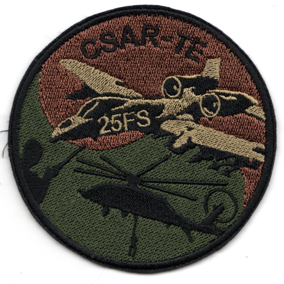 (From the Squadron supplier:) For the 25FS history, see the details listed on Page 1. This is the OCP version of the 25FS patch that says “CSAR-TE” and is a ‘joint’ patch with the 33rd Rescue Squadron during their exercises on the Korean Peninsula. This patch was found in a Korean embroidery shop in VERY limited quantities and does not come with velcro attached.