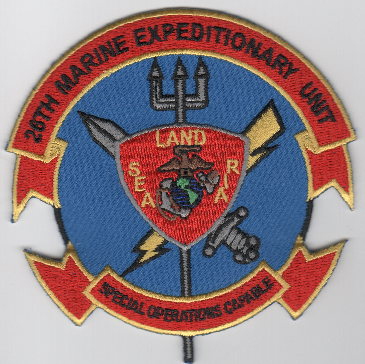 This is the color version of the patch for the 26th Marine Expeditionary Unit (MEU). It states “”””Special Operations Capable”””” along the bottom.
