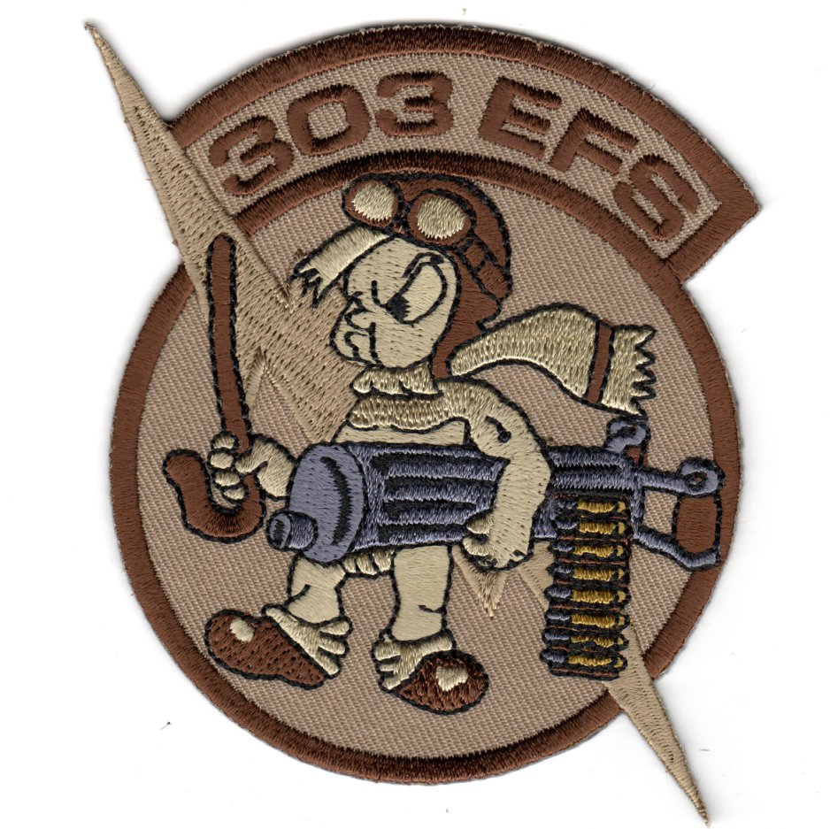 This is the desert version of the 303rd Fighter Squadron which has history relating to the Whiteman-based A-10 AFRES unit. This unit was previously based Kansas City. Their sister squadron is the 706th FS. This patch does not have velcro attached.