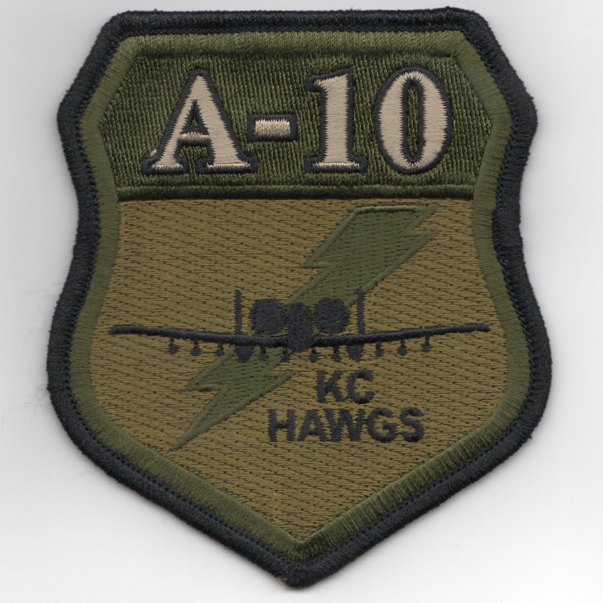 This is the subdued green version of the 303rd Fighter Squadron/KC HAWGS crest which depicts the mighty A-10 Warthog frontal view. This patch does not have velcro attached.