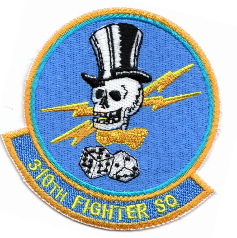 (Korean): The 310th Fighter Squadron is part of the 56th Operations Group at Luke Air Force Base, AZ. They operate the General Dynamics F-16 Fighting Falcon aircraft conducting advanced fighter training. The unit, which adopted its original “Tophat” name in September 1987, has earned two Distinguished Unit Citations, Philippine Presidential Unit Citation, Republic of Korea Presidential Unit Citation, and nine Air Force Outstanding Unit Awards. The 310FS (“Top Hats”, Tailband: Green & Yellow), fly Block 42 F-16C and D models conducting training in night operations, forward Air Control-Airborne in the F-16, and “Medium Altitude Navigation and Targeting Infrared for Night” (MANTIRN) training. These patches were found in a small, off-the-beaten-patch Korean embroidery shop in limited quantities, has that “theater- made” feel about it, and does not come with velcro attached.