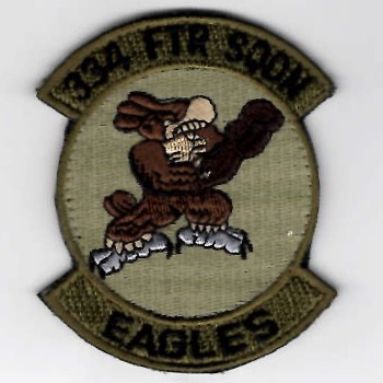 This is the ‘OCP version’ of the standard squadron patch for the 334th Fighter Squadron, one of the F-15E Strike Eagle training squadrons located at Seymour Johnson AFB, NC. This is worn on the left sleeve of the flight suit and does come with velcro attached….the Strike Eagle training squadron I went through in 1997. Great squadron!!
