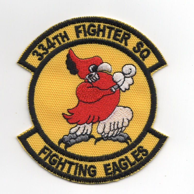 This is the ‘small, yellow version’ of the standard squadron patch for the 334th Fighter Squadron, one of the F-15E Strike Eagle training squadrons located at Seymour Johnson AFB, NC. This is worn on the left sleeve of the flight suit. I found this at a Korean embroidery shop recently, has that “theater-made” feel to it, and does not have velcro attached.