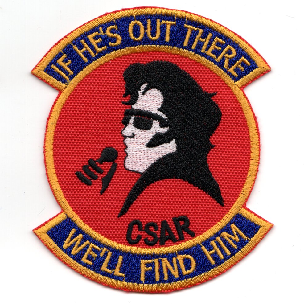 The 33d Rescue Squadron is part of the 18th Wing at Kadena Air Base, Japan. It operates Sikorsky HH-60 Pave Hawk aircraft conducting search and rescue missions. This is the red version of the deployment patch that says “IF HE’S OUT THERE, WE’LL FIND HIM (ELVIS)”. It was found in a local Korean embroidery shop and has the “theater-made” feel with the ‘cut’ edge, and does not have velcro attached.