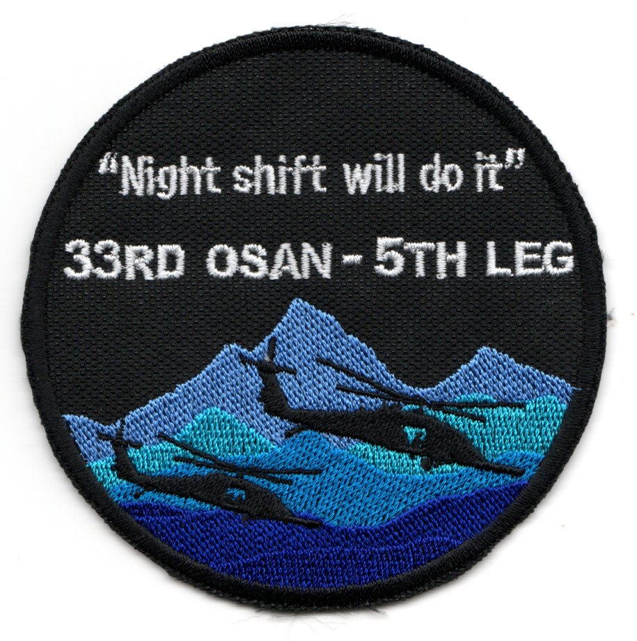 (Korean) The 33d Rescue Squadron is part of the 18th Wing at Kadena Air Base, Japan and operate the Sikorsky HH-60 Pave Hawk aircraft conducting search and rescue missions. This patch was created with one of their many mottos: “NIGHT SHIFT WILL DO IT”, and as a rescue unit, likes to operate under the cover of night. These were found in a local Korean embroidery shop and has that “theater-made” feel with the ‘cut’ edge, and does not have velcro attached.