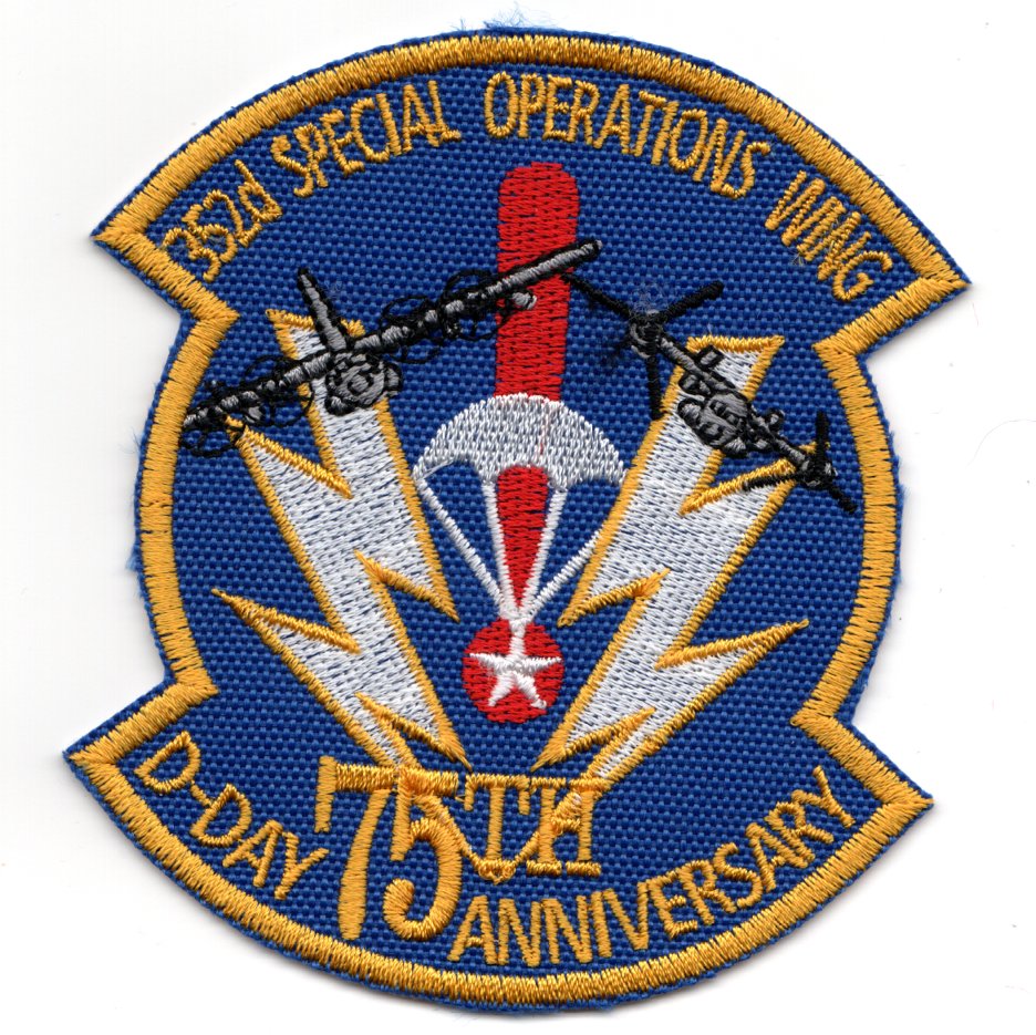 The 352nd Special Operations Wing is an operational unit of the USAF Special Operations Command currently stationed at RAF Mildenhall, United Kingdom. The unit’s heritage dates back to 1944 as an air commando unit. The 352nd Wing serves as the focal point for all U.S. Air Force special operations activities throughout the European theater for U.S. European Command (USEUCOM), as well as Africa for U.S. Africa Command (USAFRICOM) and Southwest Asia and the Middle East for U.S. Central Command. The wing is prepared to conduct a variety of high priority, low-visibility missions supporting U.S. and allied special operations forces during peacetime, joint operations exercises, and combat operations. It trains and performs special operations primarily in the USEUCOM and USAFRICOM area of operations, including establishing air assault landing zones, controlling close air support by strike aircraft and gunships, and providing trauma care for wounded and injured personnel. The group’s origins date to 1944 as the 2nd Air Commando Group. The unit was assigned to Tenth Air Force in India, whose elements operated in Burma flying a mixture of fighters, bombers, transports, military gliders and small planes performing operations behind the Japanese lines, and providing close air support for the British Fourteenth Army in the Burma campaign. This is the 75th Anniversary of D-DAY patch created by the squadron to commemorate and does not come with velcro attached.