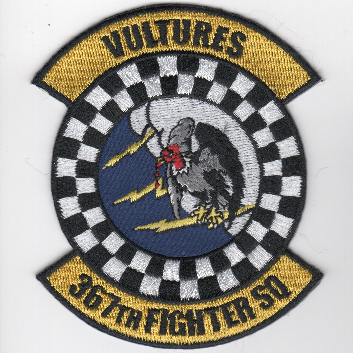 The 367th Fighter Squadron is a “reverse” associate United States Air Force unit, stationed at Homestead Air Reserve Base, Florida, where it operates and maintains the General Dynamics F-16 Fighting Falcons of the 482d Fighter Wing of the Air Force Reserve Command. Its parent is the 495th Fighter Group at Shaw Air Force Base, South Carolina. This is the blue/yellow version of their squadron patch and does not have velcro attached.