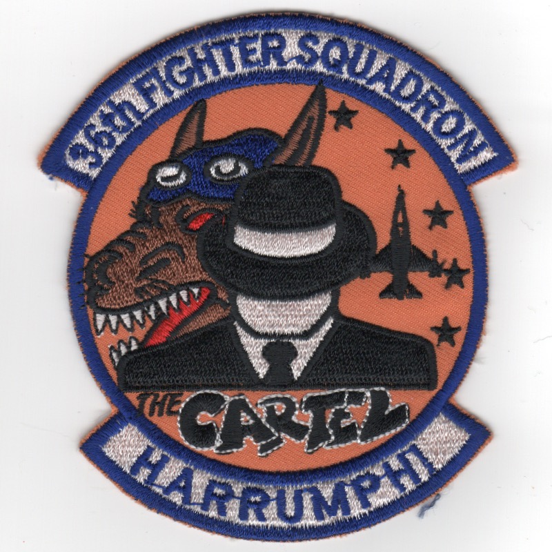 (From the Squadron supplier): The 36FS is part of the USAFs 51OG at Osan Air Base, South Korea. It operates the General Dynamics F-16 Fighting Falcon aircraft conducting air superiority missions. The squadron was first activated in 1917 as the 36th Aero Squadron and served in France during World War I, although the war ended before the unit saw combat. It has been continuously active since 1930 as a fighter squadron. This patch says “THE CARTEL” and “HARRUMPH” (along the bottom). This patch was found in a Korean embroidery shop in very limited quantities, has the “in-theater-made” feel to it, and does not come with velcro attached.