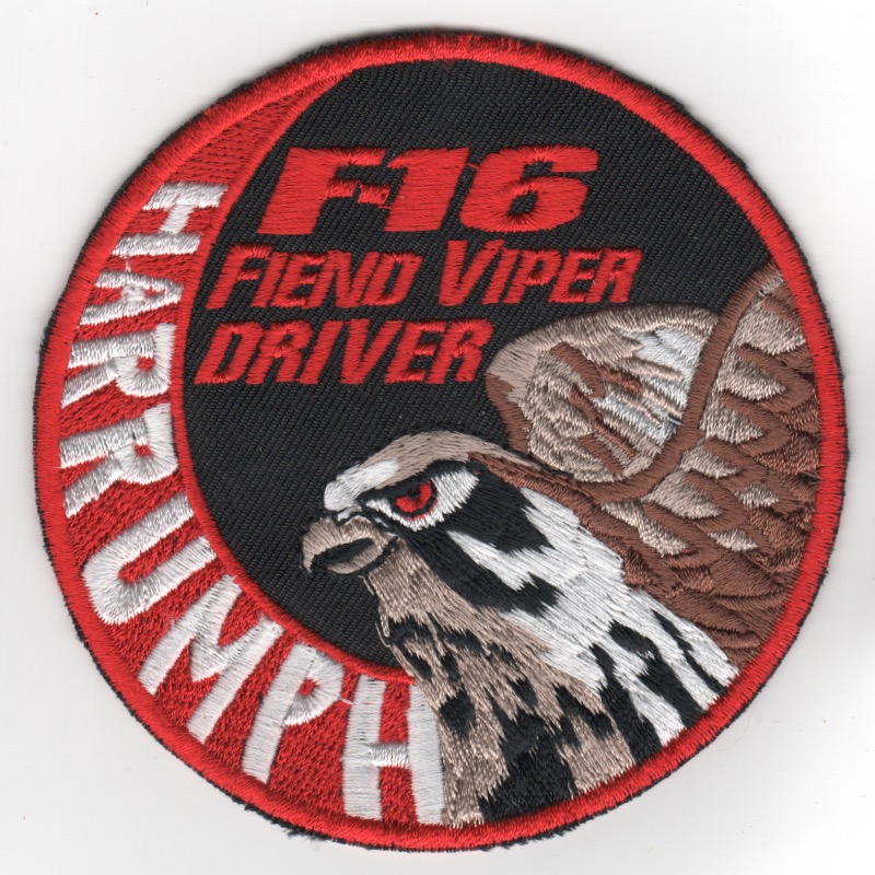 (From the Squadron supplier): The 36FS is part of the USAFs 51OG at Osan Air Base, South Korea. It operates the General Dynamics F-16 Fighting Falcon aircraft conducting air superiority missions. The squadron was first activated in 1917 as the 36th Aero Squadron and served in France during World War I, although the war ended before the unit saw combat. It has been continuously active since 1930 as a fighter squadron. This is their “HARRUMPH SWIRL” patch that says “F-16 FIEND VIPER DRIVER”. This patch was found in a Korean embroidery shop in VERY limited quantities, has the “in-theater-made” feel to it, and does not come with velcro attached. With only FOUR, you have to email me to order it.