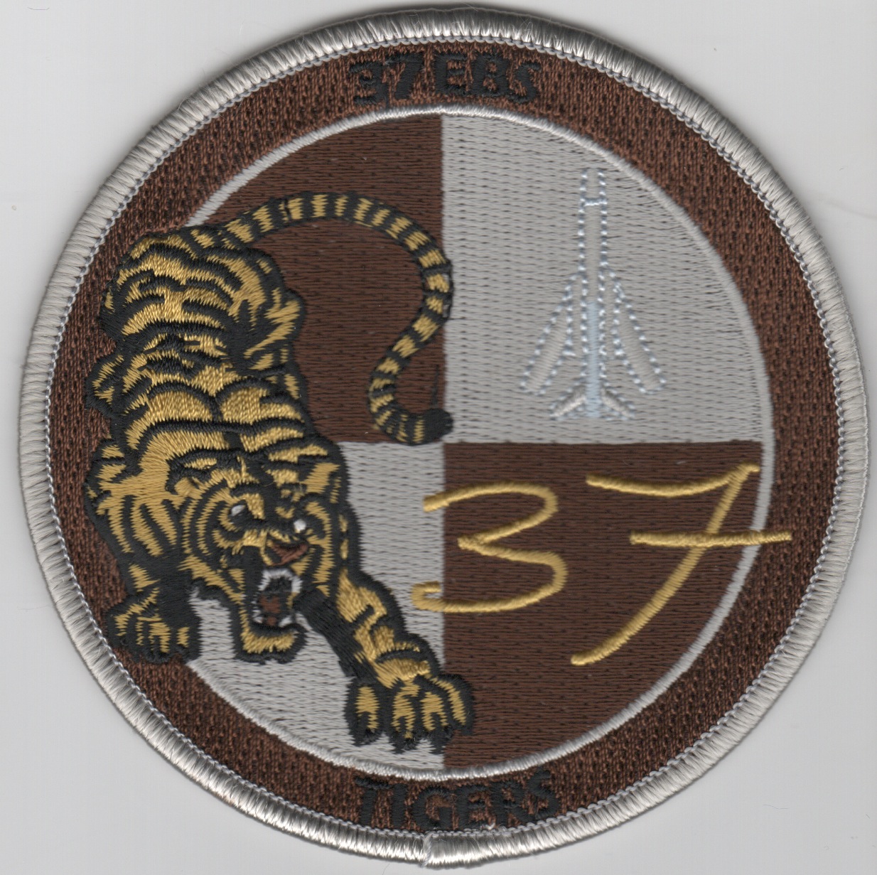 This is the “Tiger on Desert Quads” deployment patch for the 37th Bomb Squadron out of Ellsworth AFB, SD. This patch shows the B-1 in the upper right, “37” on the lower right and the Tiger on the left side of the patch. This patch does NOT come with velcro already attached.